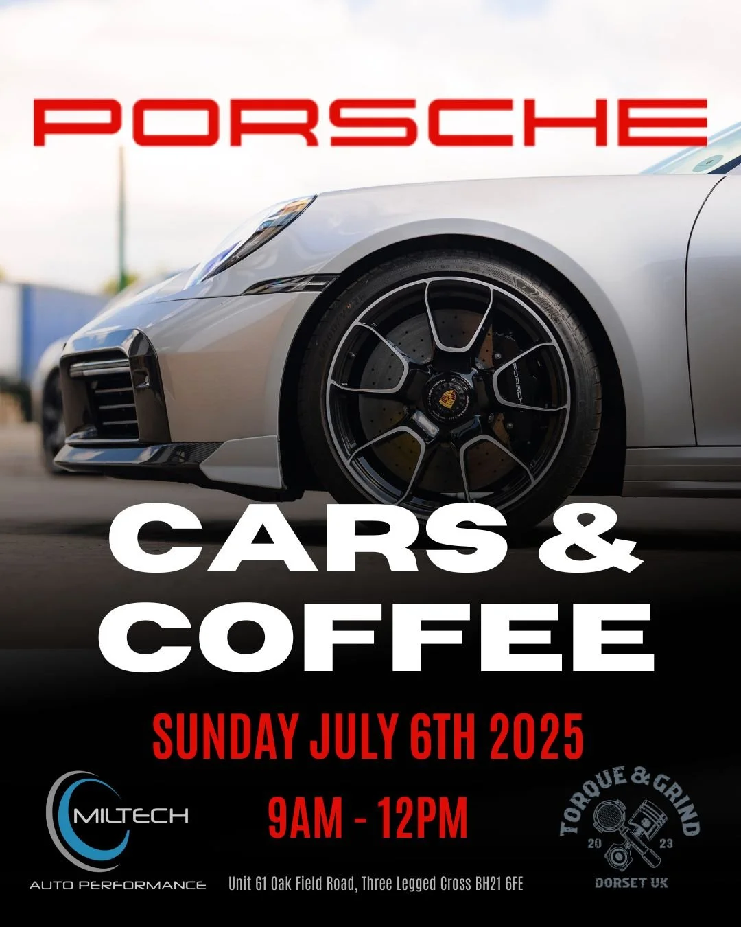 Porsche cars and coffee breakfast meet at Miltech Auto Performance near Ringwood Hampshire