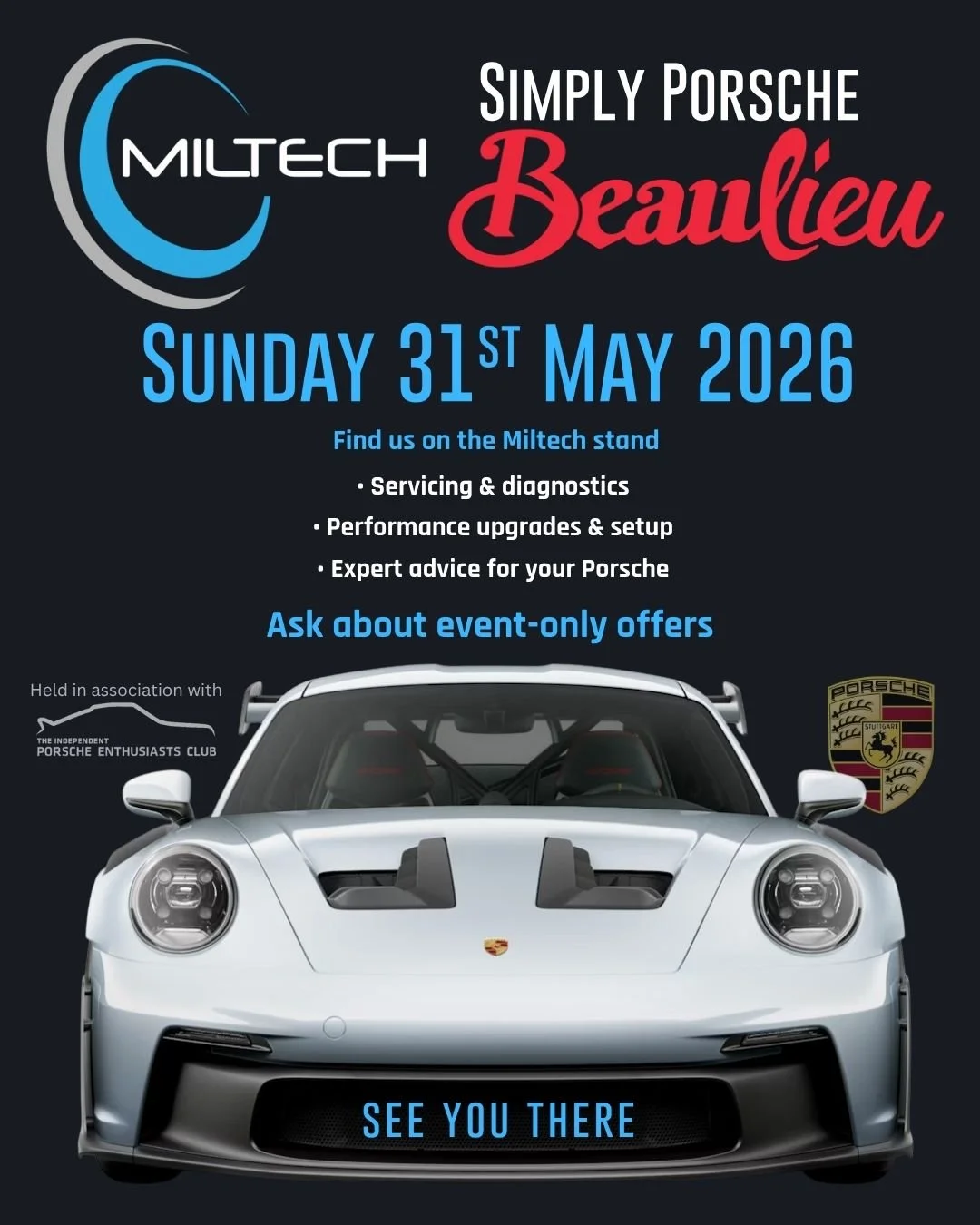 We’re excited to confirm that Miltech Auto Performance will be exhibiting at Simply Porsche 2026, held at the iconic Beaulieu Motor Museum.